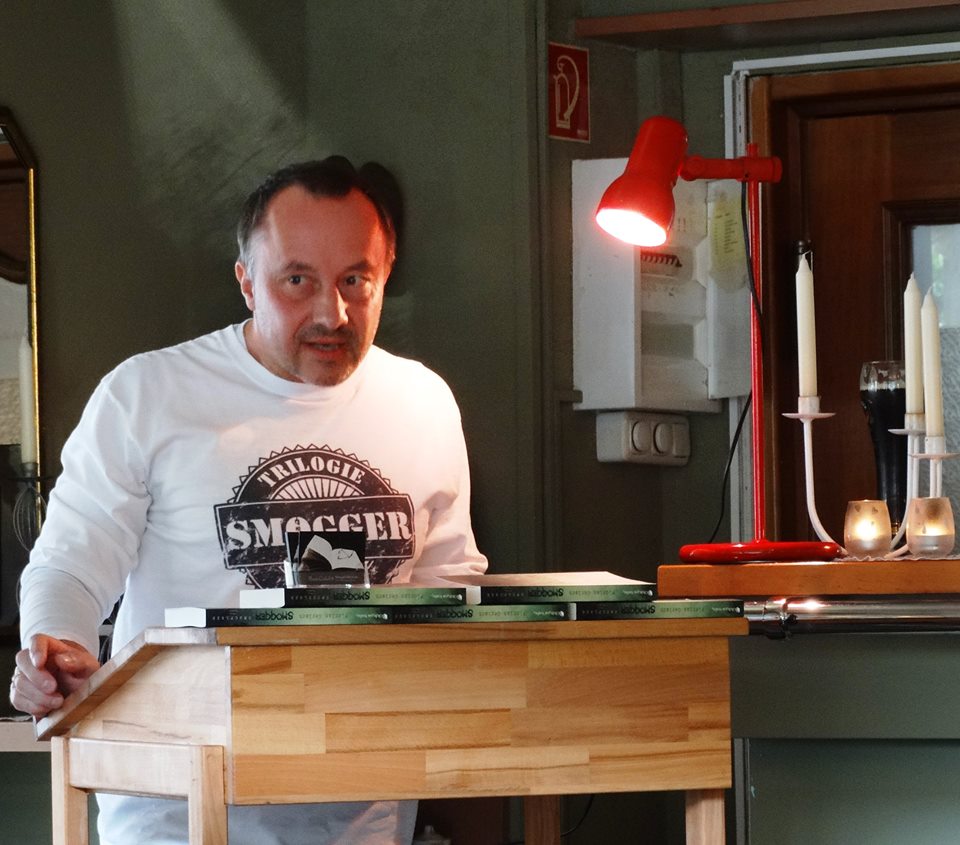 Mit der Begrüßung der beiden Autoren des Abends, Florian Gerlach und Marion Rosenkranz, begann ein Leseabend, der gegensätzlicher nicht sein konnte. Die wenigen Einführungssätze des Moderators zum ersten Band aus Florian Gerlachs »Smogger-Trilogie SMOGFLASH« machten deutlich, dass es um Horror vom Feinsten gehen würde. Einige Zuhörer wollten dann doch nicht mehr zuhören. Sie versicherten, dass es keine Missachtung des Autors wäre, wenn sie sich statt Horror zu erleben doch lieber bis zur Pause in die Gaststätte zurückziehen würden.