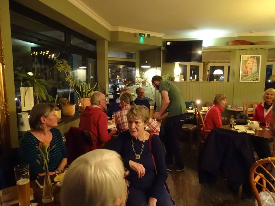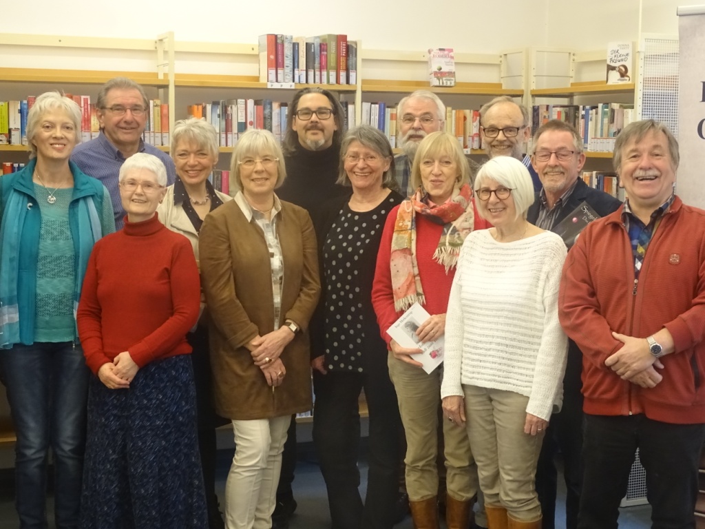 So viel steht fest: wir hatten einen schönen Abend! Neben einem „harten Kern“ von Autoren der Gruppe (I. Merkentrup, I. Silbermann, S. Didem, A. Wendeln, H. Seipelt, M. Brüning, A. Berger) waren einige interessierte Gäste gekommen und natürlich die beiden Lesenden des Abends: Gaby Kaden und Kalle Popp.