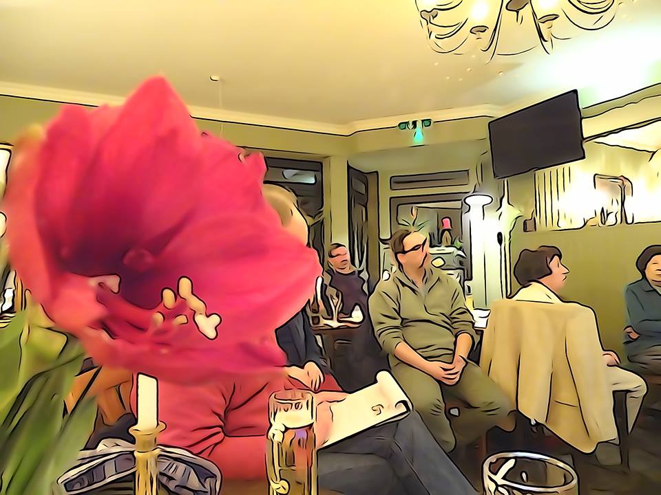 Entsprechend gut besucht, ja fast dichtgedrängt saßen die erwartungsvollen Gäste in der gewohnten Stube, wie ich hier den Gastraum bezeichnen möchte. Strahlt er doch eine heimelige Atmosphäre nicht nur durch das weiche Sofa aus, in dem die Besucher fast versinken, sondern durch die liebevolle Gestaltung allgemein.