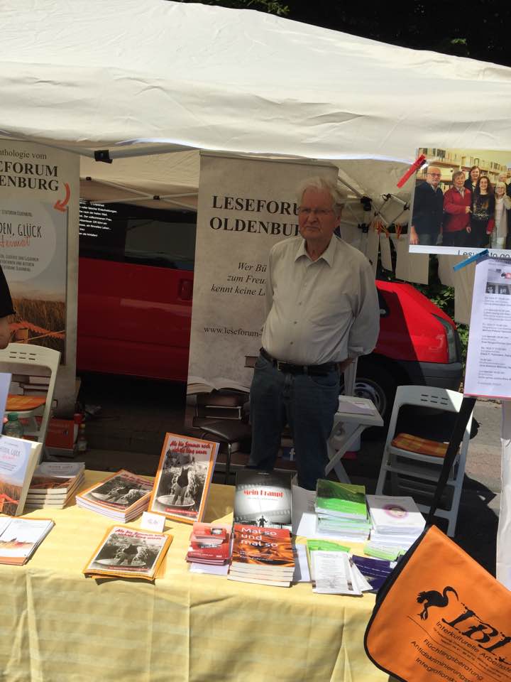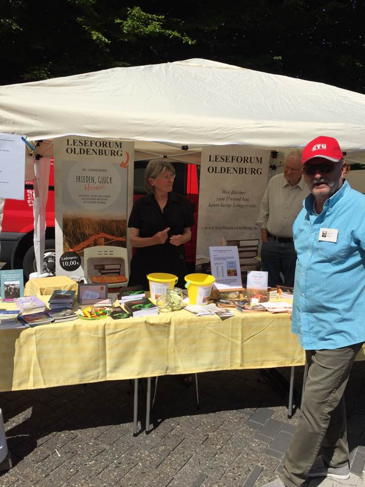 auf dem HUGO-Strassenfest in Oldenburg vor am 18.6.2017. Es wurden Anthologien der Leseforum-Autoren verlost und eine beachtliche Summe für die Spendensammlung zugunsten der Arbeit von IBIS e.V. mit Flüchtlingskindern eingenommen. Die gesamte Spende wird Weihnachten überreicht werden.
