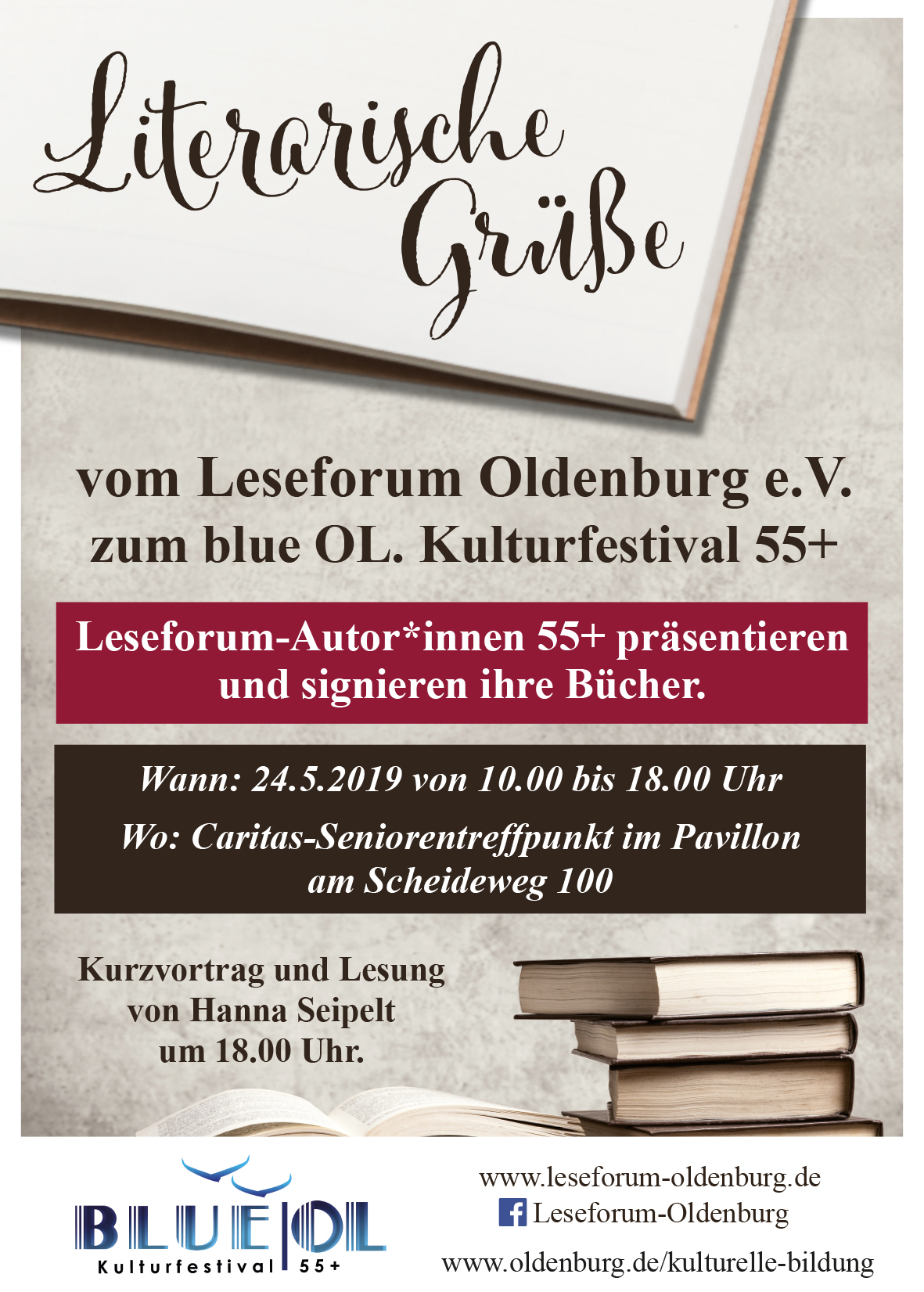 Das Leseforum Oldenburg stellte sich mit den Autoren Marlies Peters, Anita Jurow-Janßen, Petra Keup, Ilka Silbermann, Hanna Seipelt, Klaus F. Fuhrmann, Karl-Heinz Knacksterdt