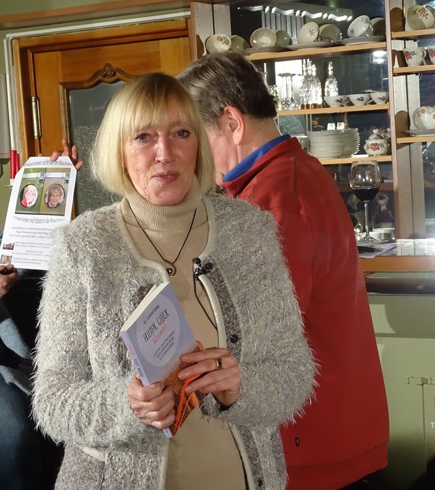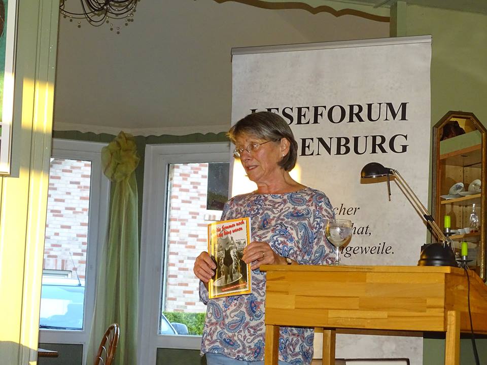 Als zweites erfreuten wir uns an Roselie Görlich. Die fünfundsiebzig jährige Dame überraschte mit ihrer zweiten Veröffentlichung, dessen Titel: „Die Mutter war (fast) immer dabei!“ schon erahnen ließ, dass dieses Buch nicht ohne Witz verfasst worden ist. In Oberschlesien geboren, durch die Kriegswirren verschiedene Wohnstätten durchlebt, in Bremen zur Grafikerin ausgebildet, lebte sie von 1963 bis 2001 in Huntlosen (Südoldenburg), wo sie ihre erkrankte Mutter bis zu ihrem Tod 1991 pflegte. Seit 2001 lebt sie in Melle. Dort drängte es sie zunehmend ihre Vergangenheit und vor allen Dingen den Tod ihrer Mutter schriftlich zu verarbeiten. Dass daraus dann dieses Buch entstehen würde, war zuerst gar nicht geplant.