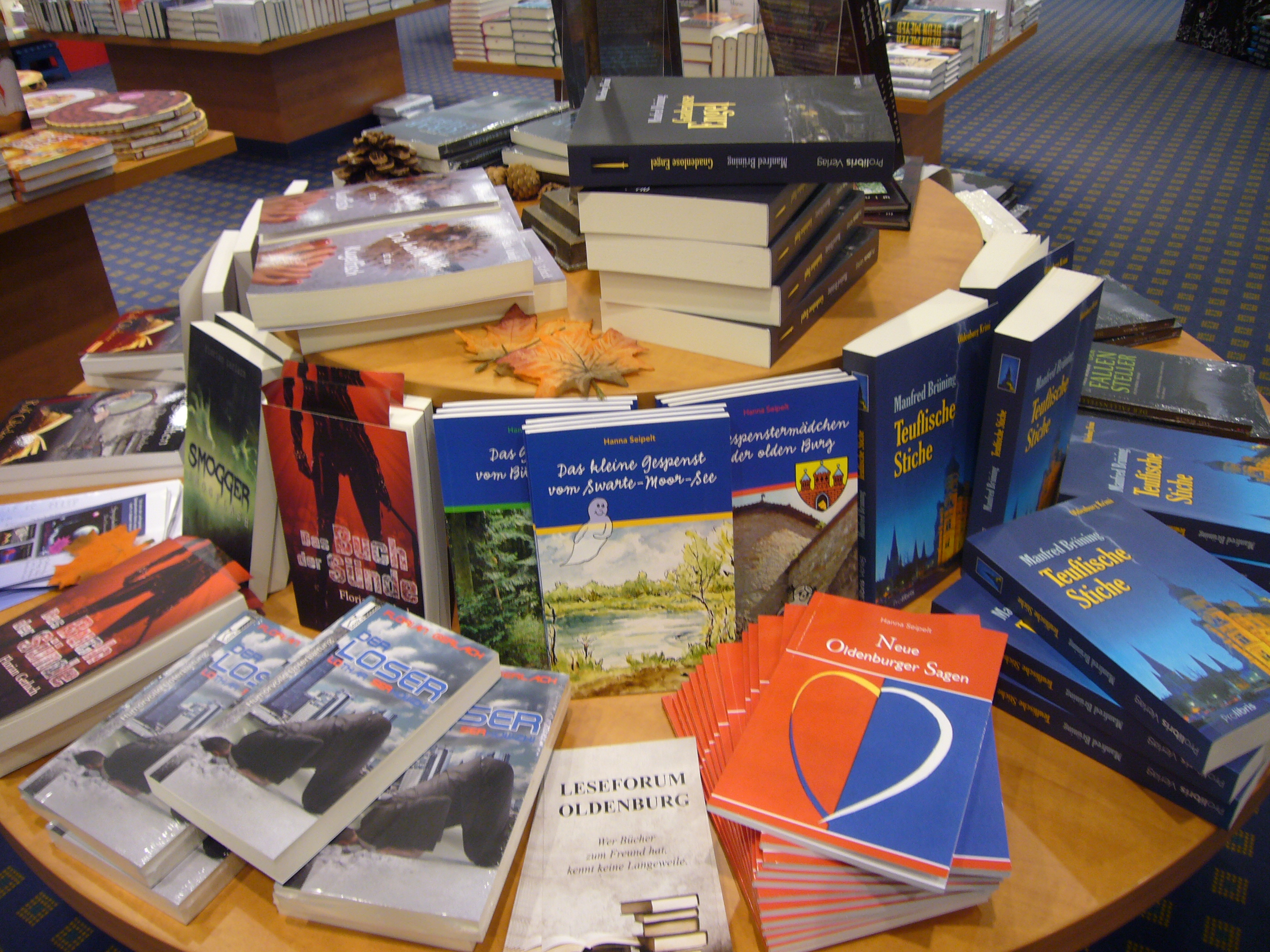 Aus Anlass des 1.Lese-Marathon hat uns die Buchhandlung Hemmieoltmanns beim Familacenter in Wechloy einen Büchertisch bereitgestellt mit den Büchern der am Marathon beteiligten Oldenburger Autoren vom Leseforum. Wir freuen uns über diese Präsentation sehr!